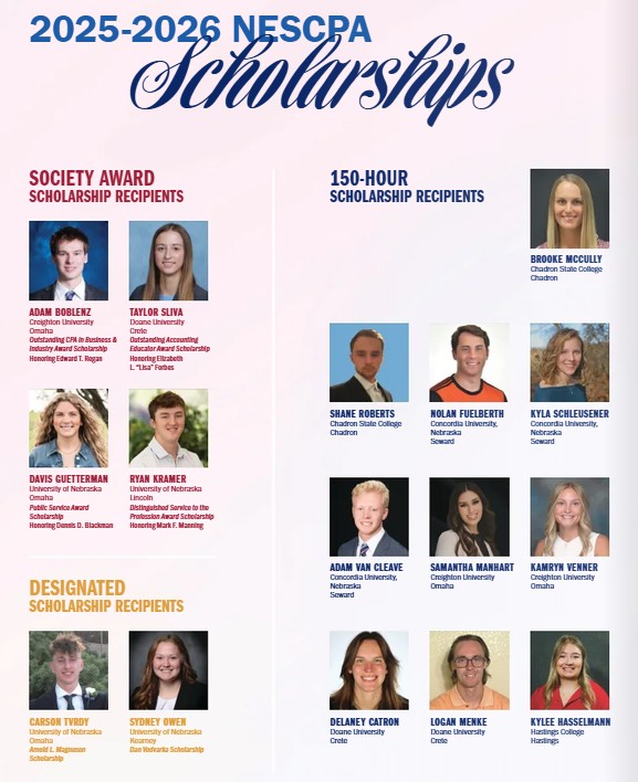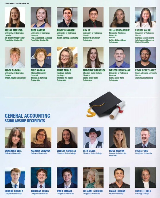 Congratulations to each and every one of this year’s scholarship recipients. These are some of the best and brightest in Nebraska and soon-to-be future leaders of the CPA profession in our state.